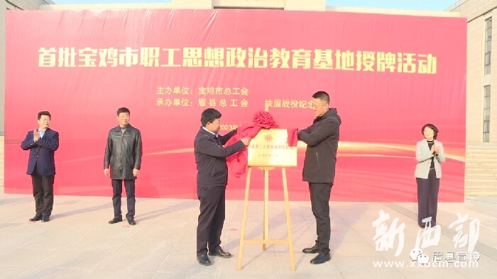 活動上,眉縣退役軍人事務局負責同志作了致辭。龐欣、李濤為鳳縣革命紀念館、航天九院7107廠航天精神教育基地、馮家山水庫教育基地、中國工合運動紀念地、扶眉戰(zhàn)役紀念館5個首批命名的職工思想政治教育基地授牌,并發(fā)放書籍。龐欣、齊永宏為寶雞市職工思想政治教育基地進行揭牌。
