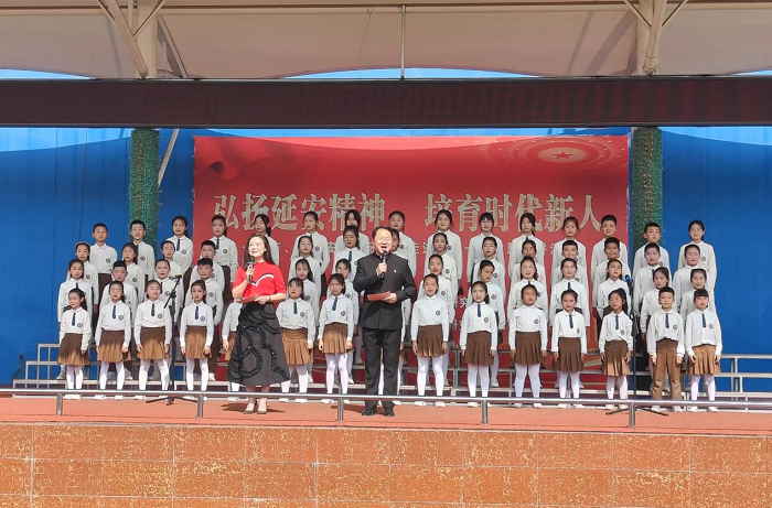 活動(dòng)在現(xiàn)場所有人合唱《沒有共產(chǎn)黨就沒有新中國》的歌聲中落下帷幕,也將整場演出推向了高潮。 此次“延安精神進(jìn)校園”紅色主題宣講活動(dòng),謳歌了中國共產(chǎn)黨百年歷史和輝煌成就,不僅激勵(lì)廣大師生堅(jiān)定正確的政治方向,用延安精神滋養(yǎng)初心、淬煉靈魂,從中汲取奮進(jìn)力量,激發(fā)干事創(chuàng)業(yè)的激情,更讓延安精神真正走入少年兒童中、走到課堂中,把延安精神的好故事、好傳統(tǒng)、好作風(fēng)播撒到少年兒童的心靈之中,引導(dǎo)少年兒童深入了解延安精神,厚植愛黨愛國愛社會(huì)主義的情懷,從小聽黨話、跟黨走,立志成長為德智體美勞全面發(fā)展的社會(huì)主義建設(shè)者和接班人,讓延安精神代代相傳。