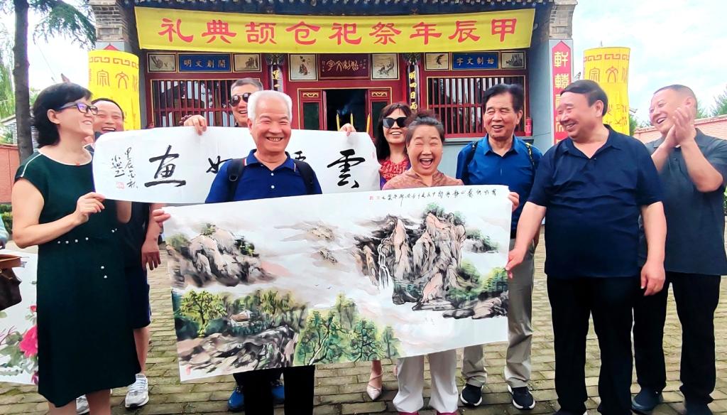 此次研學(xué)交流中,由長(zhǎng)安分會(huì)副會(huì)長(zhǎng)盧小龍主持,把長(zhǎng)安分會(huì)會(huì)員及書(shū)畫(huà)老師們精心準(zhǔn)備的書(shū)畫(huà)作品回贈(zèng)給陪同的縣文旅局同志和歧山分會(huì)同仁們。長(zhǎng)安分會(huì)對(duì)岐山蒼頡廟遺址和蒼頡墓遺址的考察調(diào)研,不僅深入了解了當(dāng)?shù)氐奈幕滋N(yùn),也為倉(cāng)頡文化的傳承與發(fā)展提供了新的思路和方向。