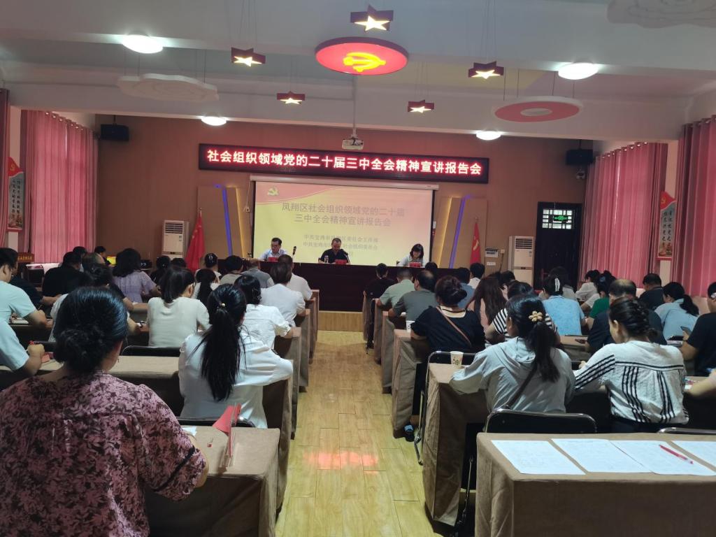 9月4日,鳳翔區(qū)委社會工作部、區(qū)社會組織黨委舉辦社會組織領(lǐng)域黨的二十屆三中全會精神宣講報(bào)告會,會議邀請市社會組織“DIY黨課”志愿講師、市思想政治工作研究會會長韋華老師以深入學(xué)習(xí)宣傳貫徹黨的二十屆三中全會精神為主題進(jìn)行專題宣講,各業(yè)務(wù)主管黨組(黨委)、行業(yè)管理部門分管領(lǐng)導(dǎo)、各社會組織黨組織書記、黨建指導(dǎo)員等近100人參加會議。