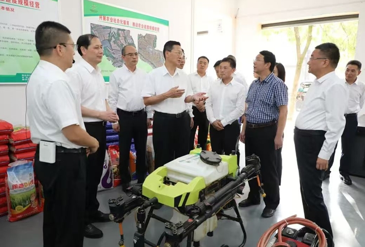 在渭南市富平縣,韓立平一行深入了解中農(nóng)集團(tuán)陜西實(shí)業(yè)發(fā)展有限公司開展社會(huì)化服務(wù)工作情況。當(dāng)聽說去年企業(yè)調(diào)集276臺(tái)設(shè)備應(yīng)對(duì)罕見的“爛場雨”,搶收搶種了四萬畝糧食后,韓立平給予了充分肯定。他強(qiáng)調(diào),要扎實(shí)做好為農(nóng)服務(wù)工作,持續(xù)推進(jìn)農(nóng)業(yè)社會(huì)化服務(wù),因地制宜發(fā)展單環(huán)節(jié)、多環(huán)節(jié)、全程生產(chǎn)托管等“保姆式”服務(wù)模式,把小農(nóng)戶引入現(xiàn)代農(nóng)業(yè)發(fā)展軌道,不斷為糧食安全、農(nóng)民增收積聚力量。