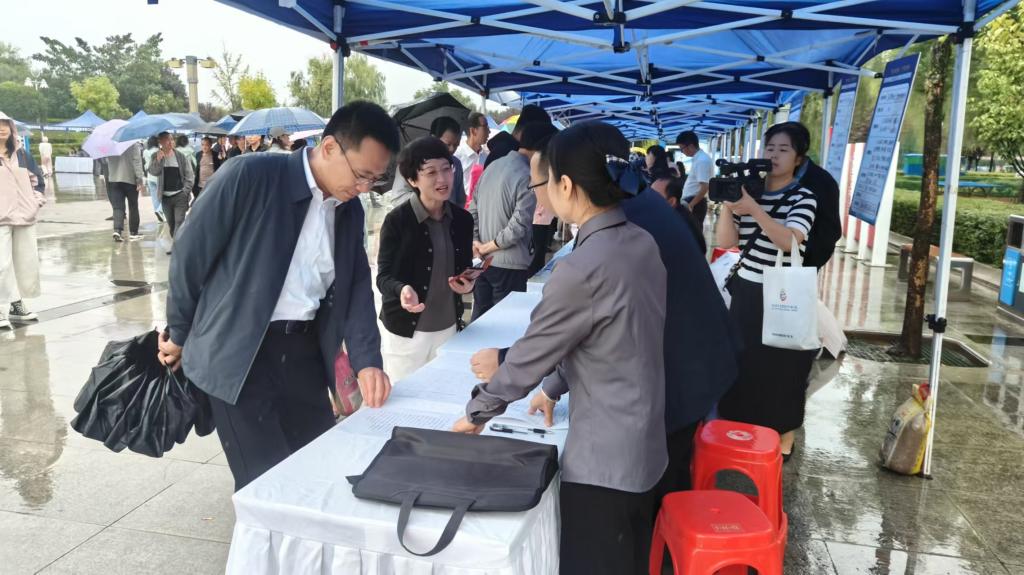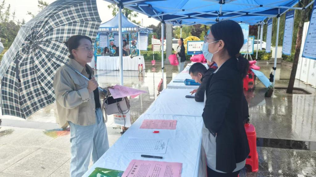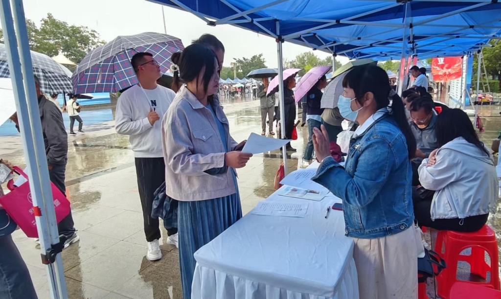 “你好,需要找工作嗎?”“可以了解一下我們企業(yè)”盡管下著雨,但求職者們的熱情絲毫不減。求職者和招聘企業(yè)之間展開充分交流,招工、求職“供需兩旺”。不少求職者穿梭于各企業(yè)招聘展臺前,詢問工資待遇,填寫求職信息等。企業(yè)招聘人員熱情地向每一位求職者介紹企業(yè)崗位需求情況,講解薪資待遇、相關(guān)補貼政策等,現(xiàn)場人頭攢動,熱鬧非凡。