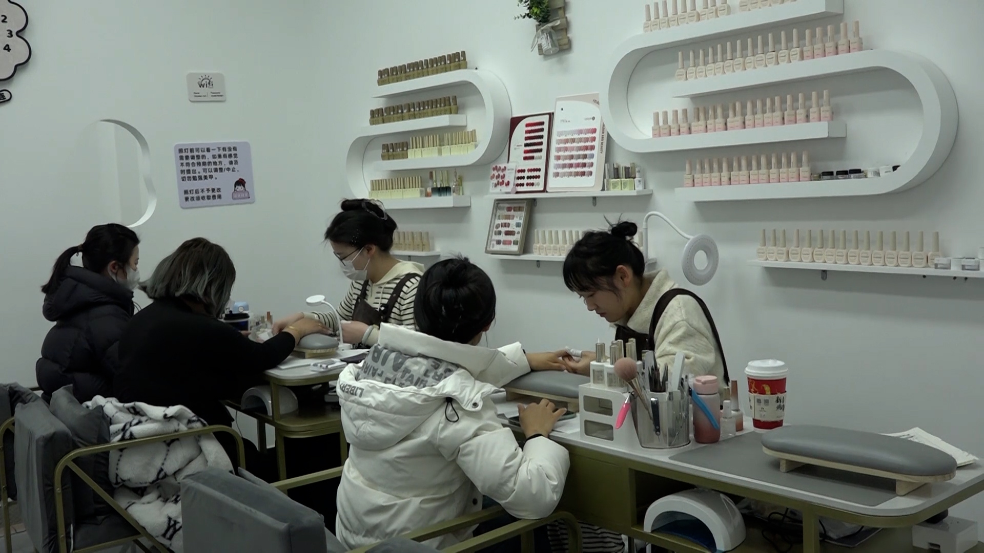 在某美甲店里記者看到,美甲區(qū)的座位上坐滿了顧客,她們或是精心挑選著心儀的指甲油顏色,或是與美甲師交流著復(fù)雜精美的美甲款式,指尖上的藝術(shù)在這個(gè)時(shí)候展現(xiàn)得淋漓盡致。