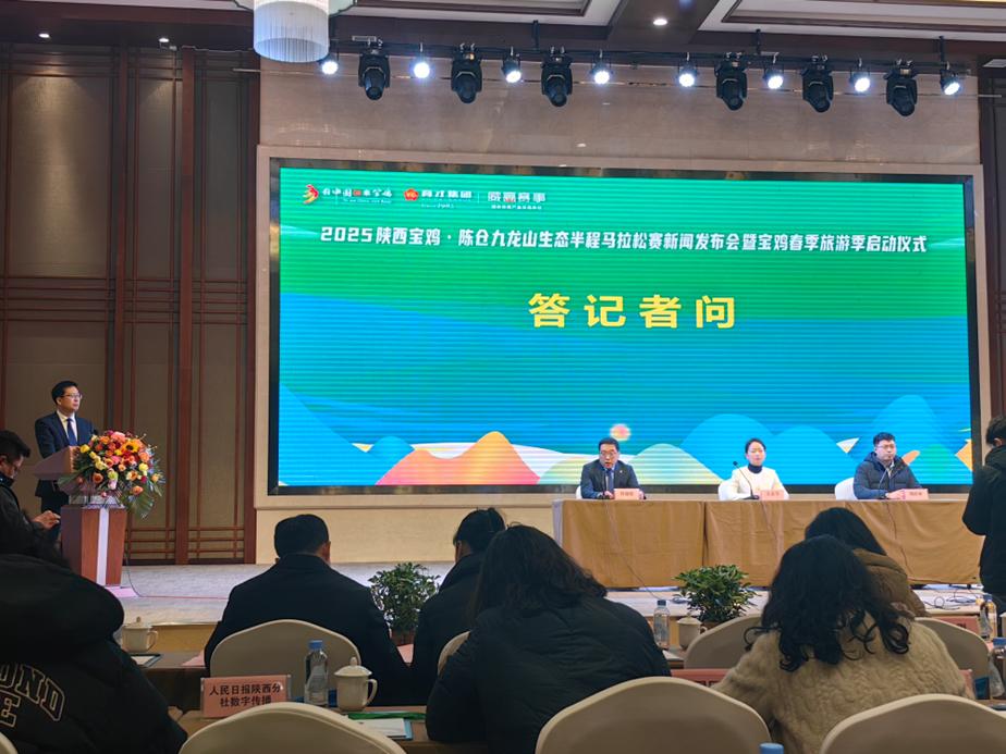 2025陜西寶雞·陳倉九龍山生態(tài)半程馬拉松賽新聞發(fā)布會(huì)暨寶雞春季旅游季啟動(dòng)儀式2月13日在九龍山國際溫泉酒店舉行。據(jù)介紹,賽事將于4月20日上午8時(shí)在九龍山景區(qū)鳴槍開跑,8000名跑者將用腳步丈量秦嶺北麓的“山水賽道”。