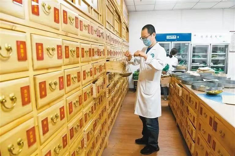 醫(yī)務(wù)人員在為患者抓藥。圖/中國(guó)中醫(yī)藥報(bào)。