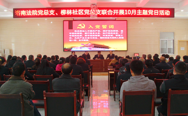 10月11日,洛南法院黨總支組織20余名黨員干警前往柳林社區(qū),與社區(qū)黨總支聯(lián)合開展了“學(xué)習(xí)貫徹縣黨代會精神,凝心聚力促落實(shí)譜新篇 ”主題黨日活動。