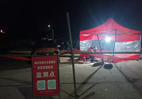 二是帶頭發(fā)揮黨員先鋒模范作用。五里鋪村黨支部在支部書記章玉福的帶領(lǐng)下,第一時(shí)間組建了29人的疫情防控黨員志愿者服務(wù)隊(duì)對(duì)五里鋪村轄區(qū)內(nèi)5條重要道路設(shè)立卡點(diǎn),并進(jìn)行 24 小時(shí)管控,嚴(yán)格執(zhí)行轄區(qū)居住人員進(jìn)出制度,查驗(yàn)出行證,對(duì)進(jìn)出人員逐一進(jìn)行登記排查,測(cè)量體溫。飄揚(yáng)在疫情抗擊一線的黨旗見證了他們不分晝夜、忘我工作的身影。