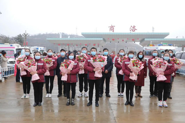 上午10點(diǎn)10分和12點(diǎn)30分,商洛北收費(fèi)站出口廣場(chǎng),市中心醫(yī)院分別舉行了簡(jiǎn)短的歡迎儀式。部分醫(yī)院同事、隊(duì)員家屬手捧鮮花和歡迎橫幅早早迎在路邊,臉上洋溢著喜悅。市中心醫(yī)院在家領(lǐng)導(dǎo)班子成員及部分職能科室負(fù)責(zé)人參加。
