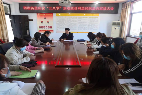 開展一場婦女維權宣講培訓活動。3月7日下午,縣法律援助中心主任李軍鋒深入洛南縣四皓街道辦開展《民法典》宣講報告會,通過發(fā)條講解、案例剖析,讓廣大女性充分運用法治思維維護婦女權益。