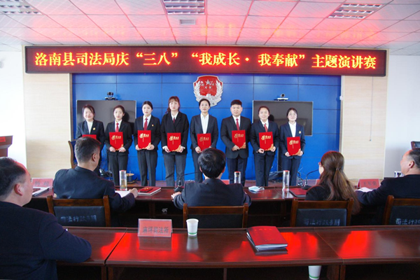 開展一場“我成長·我奉獻”主題演講賽。3月7日,洛南縣司法局組織全系統(tǒng)干警開展以“我成長·我奉獻”為主題的演講賽,經(jīng)過精心籌備部署,來自基層司法所和公證處的8名年輕選手緊緊圍繞演講主題,以飽滿的熱情、昂揚的精神狀態(tài),抒豪情、立壯志,分享工作故事,謳歌時代主旋律。經(jīng)過激烈角逐,最終評出一等獎1名,二等獎2名,三等獎3名,優(yōu)秀獎2名,并為獲獎選手進行了頒獎。此次演講比賽體現(xiàn)了基層女性干警愛崗敬業(yè)、無私奉獻的精神風貌,激發(fā)了全體干警的干事創(chuàng)業(yè)熱情,激勵全縣廣大司法行政女干警繼續(xù)唱響巾幗之歌、彰顯巾幗之美、貢獻巾幗之智,在新一年的工作中繼續(xù)發(fā)揮“半邊天”作用。