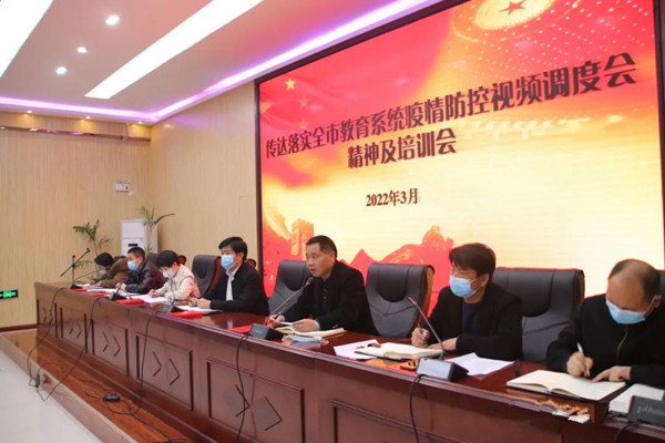副校長杜愛國傳達落實全市教育系統(tǒng)疫情防控視頻調(diào)度會精神,他要求全體班主任落實好晨午檢、因病缺勤追蹤、“一米線、戴口罩、勤洗手”、規(guī)范消毒、摸排中高風險返丹人員等工作。