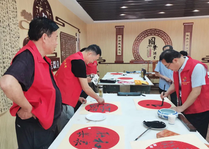 授旗儀式前,市縣領(lǐng)導(dǎo)觀看了書(shū)畫(huà)展和文化志愿者現(xiàn)場(chǎng)書(shū)畫(huà)義寫(xiě)活動(dòng)。