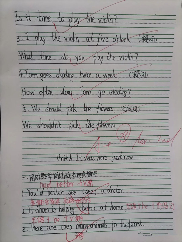 翻開學(xué)生的作業(yè),格式規(guī)范,書寫工整,給人一種賞心悅目之感。教師批改細(xì)致、規(guī)范。老師們都能做到作業(yè)進(jìn)度和課堂教學(xué)同步,作業(yè)量適中,內(nèi)容有針對性,批改及時,有批改日期,有激勵性評語,有錯題更正,學(xué)生改正后的錯題老師能進(jìn)行二次批閱。作業(yè)題型設(shè)計(jì)精巧,難易適中,既有基礎(chǔ)積累,又有分層訓(xùn)練。可見,教師平時非常注重學(xué)生作業(yè)習(xí)慣的養(yǎng)成教育。
