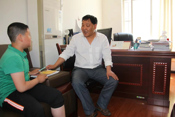 五年級學(xué)生李元,父母離異,家庭貧困。父親在城里打工,在學(xué)校附近租房。由于父親忙于工作,有時候加班不能按時回家,孩子獨(dú)自一人在租住房里睡覺。當(dāng)他得知情況后,帶領(lǐng)班主任上門家訪,每次總會給孩子送去勵志書籍,鼓勵孩子豎起生活的勇氣,刻苦學(xué)習(xí)。六年級畢業(yè),李元取得了優(yōu)異的成績。每到教師節(jié),總會給他發(fā)信息,祝他節(jié)日快樂。
