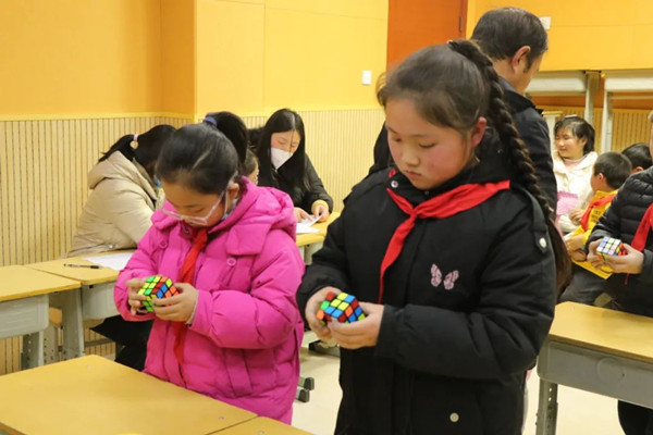 三年級的“趣味魔方”比賽精彩激烈,小小的魔方,在一雙雙靈活的小手中自由翻轉(zhuǎn),快速復原,既鍛煉了學生的動手動腦能力,又提高了空間思維能力。四年級“紙船承重”比賽也吸引很多孩子們熱情參與,小小紙船水中漂,承重多少細思量,讓孩子們在實踐中潛移默化地理解了浮力和重力的關(guān)系。