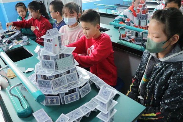 五年級的“紙牌搭建”和六年級的“蘿卜搭建”比賽是對孩子們專注力、空間平衡能力和創(chuàng)新思維的一種考驗,只見他們聚精會神,精誠協(xié)作,讓一張張普通紙牌、一塊塊尋常的蘿卜,變成了一件件令人嘆為觀止的藝術(shù)品。參加比賽的孩子們紛紛表示,本次活動讓他們真正感受到了團結(jié)就是力量,協(xié)作創(chuàng)造奇跡。