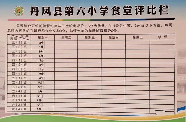 “民以食為天,食以安為先”,丹鳳縣第六小學在科技和教育體育局的指導下,不斷改進工作機制,創(chuàng)新工作方法,為保障學生吃到“熱乎、可口、美味、安全”的營養(yǎng)餐服務,為實現“安靜、干凈、節(jié)約、均衡”的食育宗旨挖潛促能。