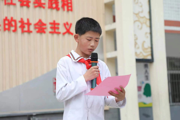 四位活動(dòng)小主持人閃亮登場,宣布“踐行黨的二十大精神·爭做新時(shí)代好隊(duì)員”入隊(duì)納新活動(dòng)正式開始。在莊嚴(yán)的出旗曲中,入隊(duì)儀式拉開序幕。在鮮艷的隊(duì)旗下,新老隊(duì)員們滿懷激情高唱《中國少年先鋒隊(duì)隊(duì)歌》,嘹亮的歌聲響徹校園。黨支部副書記方寶志同志宣讀學(xué)校納新決定,并對新加入少先隊(duì)組織的139名少先隊(duì)員表示祝賀。大隊(duì)輔導(dǎo)員王曉暢同志為新建中隊(duì)授隊(duì)旗。在火紅的旗幟下,星星之火,必將代代相傳!接著,四年級老隊(duì)員代表為一年級新隊(duì)員們佩戴紅領(lǐng)巾,鮮艷的紅領(lǐng)巾在胸前飄揚(yáng),新隊(duì)員們臉上洋溢著自豪。五(7)中隊(duì)的馬睿夕同學(xué)代表老隊(duì)員發(fā)言,他表示將會(huì)心系祖國、好好學(xué)習(xí),爭做有理想、有道德、有文化、有紀(jì)律的一代新人。爭當(dāng)表率,時(shí)刻做班級里榜樣,牢記習(xí)爺爺囑托,用自己的實(shí)際行動(dòng),為紅領(lǐng)巾增光添彩。一(5)中隊(duì)的宋若汐同學(xué)代表新隊(duì)員發(fā)言,她表達(dá)了加入少先隊(duì)組織無比愉悅的心情和積極向上的決心。