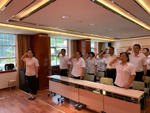 在鮮紅的黨旗下,全體黨員佩戴黨徽,舉起右手,握緊拳頭,由黨總支書記黨媛媛同志領(lǐng)誓,全體黨員鄭重宣誓:“我志愿加入中國共產(chǎn)黨,擁護黨的綱領(lǐng),遵守黨的章程,履行黨員義務,執(zhí)行黨的決定,嚴守黨的紀律,保守黨的秘密,對黨忠誠,積極工作,為共產(chǎn)主義奮斗終身,隨時為黨和人民犧牲一切,永不叛黨。”鏗鏘誓言,心潮澎湃,初心昭昭,砥礪前行。表達了大家對黨的無限忠誠、熱愛和聽黨話、跟黨走的堅定決心。