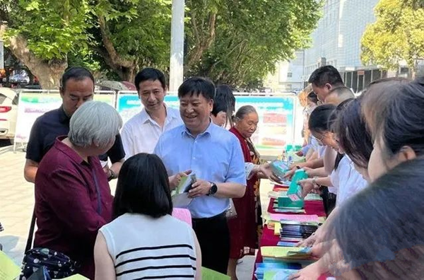 縣政府副縣長黃博向現(xiàn)場群眾發(fā)放宣傳資料,認(rèn)真解答群眾提出的自然資源相關(guān)問題,將現(xiàn)場活動推向了高潮。