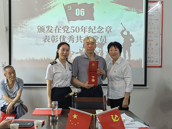 活動中,全體黨員莊嚴(yán)宣誓,重溫入黨誓詞,社區(qū)黨總支書記結(jié)合實際,以“做一名優(yōu)秀共產(chǎn)黨員”為主題、用通俗易懂的語言為大家講了一員生動黨課,闡釋了一名優(yōu)秀共產(chǎn)黨員的標(biāo)準(zhǔn)和擔(dān)當(dāng)。5名社區(qū)黨員分別對“構(gòu)建人類命運(yùn)共同體;家是最小國,國是千萬家;綠水青山就是金山銀山;民生從來無小事,一枝一葉總關(guān)情;江山就是人民,人民就是江山”等習(xí)近平總書記語錄做了詳細(xì)解讀,并結(jié)合自身的工作實際分享心得。之后,黨員們用詩歌朗誦《我的祖國》、《跨越百年的承諾》、《永遠(yuǎn)跟黨走 健康伴我行》、《我們的精神之旅》及歌曲《唱支山歌給黨聽》、《沒有共產(chǎn)黨就沒有新中國》謳歌黨的豐功偉績。當(dāng)天的活動還為50年黨齡的老黨員頒發(fā)了在黨50年紀(jì)念章,表彰了9名優(yōu)秀共產(chǎn)黨員,現(xiàn)場慰問了11名生活困難黨員。