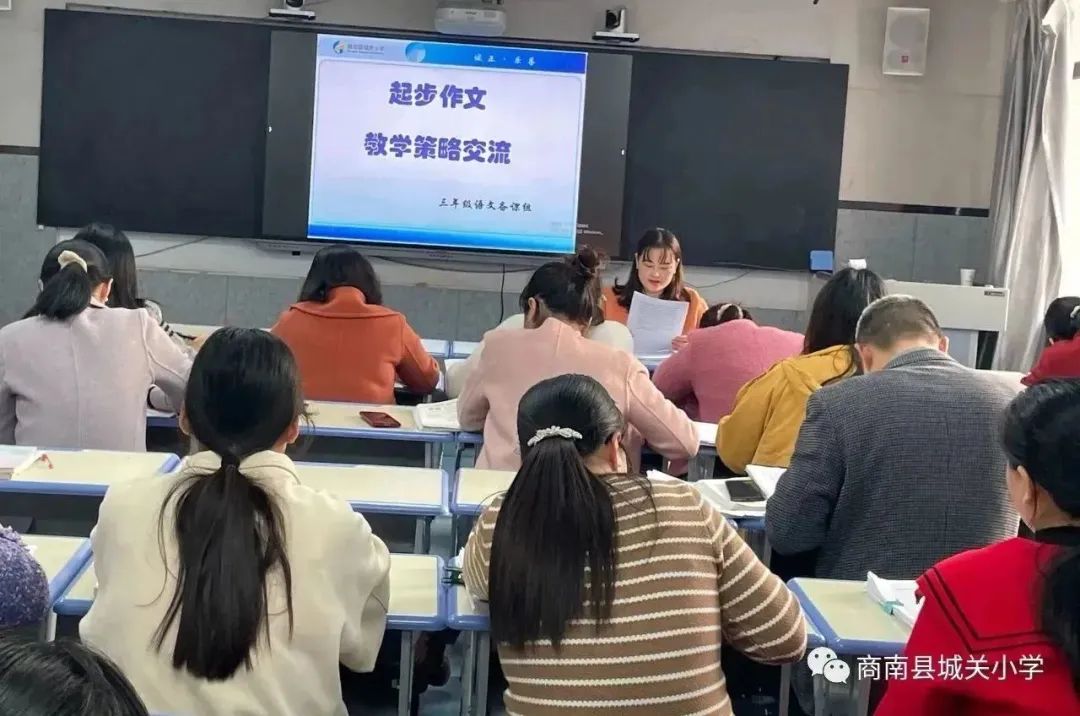 三年級學(xué)生習(xí)作處于由寫話向?qū)懽魑牡倪^渡階段,是小學(xué)作文教學(xué)的起步階段,也是學(xué)生正式接觸作文的開始。為了切實(shí)提高起步作文教學(xué)效果,11月9日下午,商南縣城關(guān)小學(xué)三年級語文備課組開展了主題為“起步作文教學(xué)策略經(jīng)驗(yàn)交流”的教研活動(dòng)。