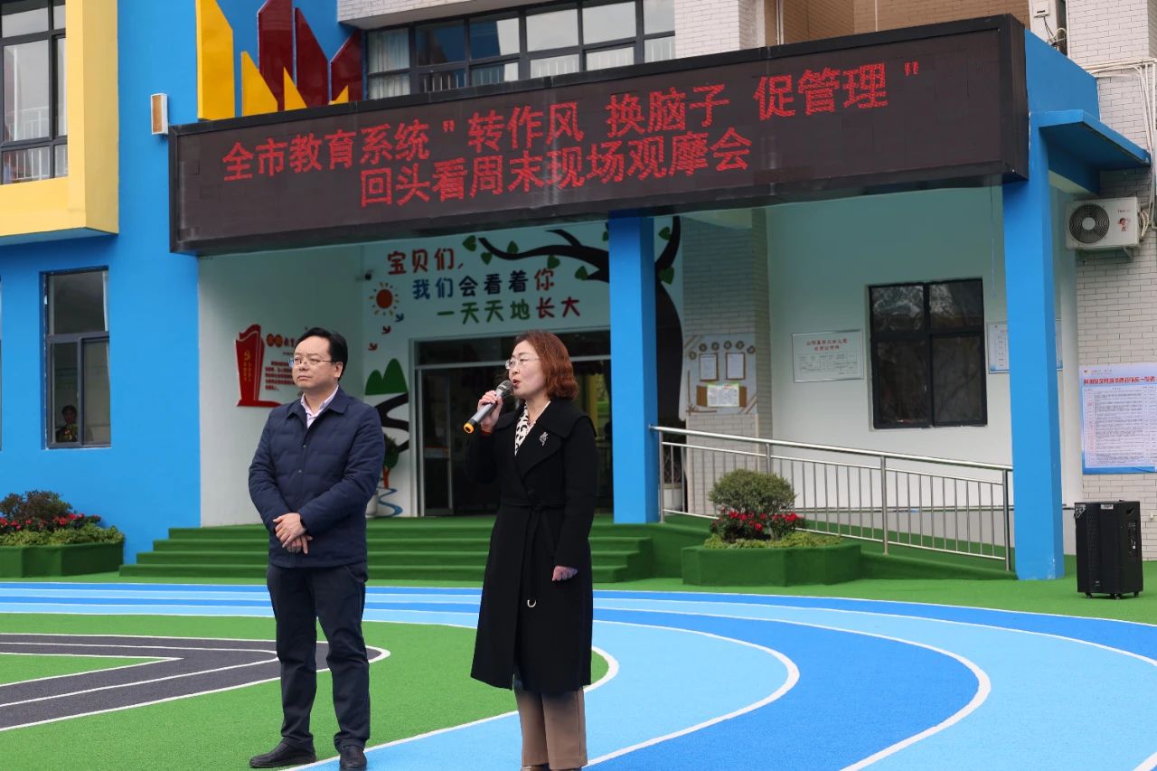 市教育局、六縣一區(qū)教育主管部門領(lǐng)導(dǎo)和校園長代表共120余人組成8支觀摩小隊,分兩組同步交叉觀摩了縣第二幼兒園的學(xué)校文化建設(shè),突出幼兒園環(huán)創(chuàng)及保教保育精細(xì)化管理,提高保教質(zhì)量;觀摩高壩店九年制學(xué)校的教師管理,突出教師培訓(xùn)培養(yǎng)、素質(zhì)提升和教育教學(xué)研究工作;觀摩第三中學(xué)的教學(xué)管理、學(xué)生管理,突出領(lǐng)導(dǎo)班子成員深度參與集體備課與師生結(jié)對幫扶,提高課堂教學(xué)水平和學(xué)生管理能力;觀摩第四小學(xué)的校園環(huán)境、學(xué)生自主管理及學(xué)校社團活動從小培養(yǎng)學(xué)生良好的學(xué)習(xí)、生活習(xí)慣;觀摩職教中心的新校區(qū)建設(shè)、康養(yǎng)實訓(xùn)基地建設(shè)及“雙優(yōu)計劃”項目創(chuàng)建工作,著力打造優(yōu)質(zhì)中等職業(yè)學(xué)校。觀摩結(jié)束后,由市教育局副局長楊占水對本次周末現(xiàn)場觀摩會進(jìn)行了點評。