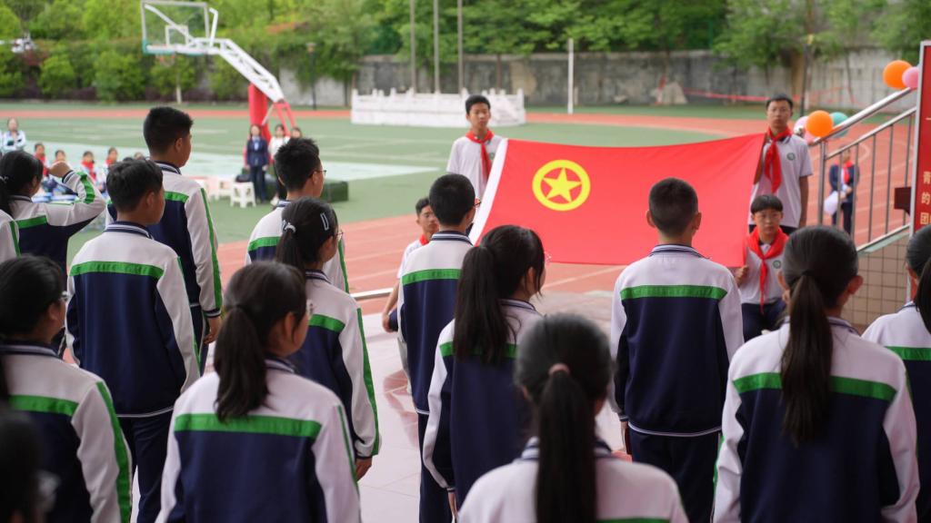 離隊儀式,在星星火炬下傳承薪火。伴隨著莊嚴(yán)的《出旗曲》,旗手們邁著整齊的步伐,高舉隊旗入場,奏唱《中國少年先鋒隊隊歌》。旬陽市城關(guān)二中少先隊大隊輔導(dǎo)員廖端端宣布離隊決定,離隊的少先隊員代表王靖涵發(fā)言。共青團(tuán)旬陽市委副書記王青青為離隊少先隊員提出寄語,她希望新團(tuán)員立志成才,修身立德,刻苦學(xué)習(xí),心懷感恩。