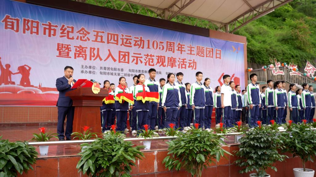 新西部網(wǎng)消息(通訊員 汪興龍)4月30日,為紀(jì)念五四運動105周年,弘揚“愛國、進(jìn)步、民主、科學(xué)”的五四精神。共青團(tuán)旬陽市委、旬陽市教育體育和科技局、旬陽市少工委聯(lián)合主辦的“旬陽市紀(jì)念五四運動105周年主題團(tuán)日暨離隊入團(tuán)示范觀摩活動”在旬陽市城關(guān)二中舉行。共青團(tuán)旬陽市委書記康雷芳、旬陽市教體科技局黨委委員、副局長霍良平、共青團(tuán)旬陽市委副書記王青青出席活動。旬陽市各學(xué)校團(tuán)委書記、城關(guān)二中師生和家長代表等1000余人參加了活動。