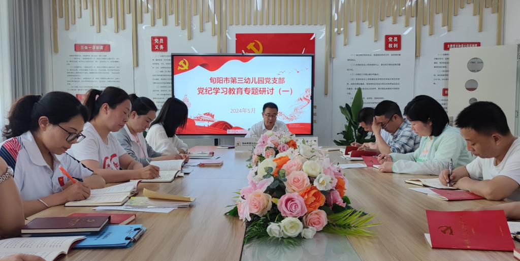旬陽市第三幼兒園黨支部主動作為,積極行動,把黨紀學(xué)習(xí)教育作為當前一項重要政治任務(wù),與保教中心工作同安排、同推進、同落實。組建黨紀學(xué)習(xí)教育工作專班、制定工作方案和學(xué)習(xí)計劃,發(fā)放學(xué)習(xí)讀本,先后召開支委會、黨員大會傳達學(xué)習(xí)上級黨委會議精神,安排啟動黨紀學(xué)習(xí)教育工作,確保學(xué)習(xí)教育“有計劃、有目標、有方向”。