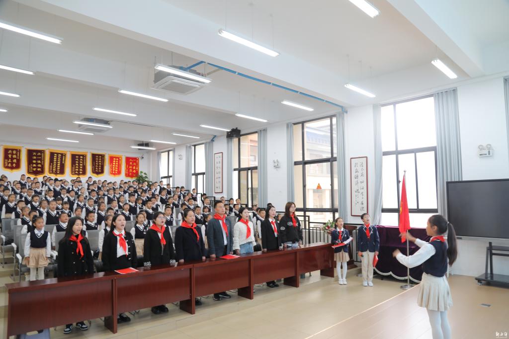 據(jù)了解,在建隊日來臨前夕,二年級各班積極開展隊史教育,遴選準隊員,進一步讓學生了解、熱愛少先隊組織,盡快成為一名合格的少先隊員。在建隊日主題隊會暨納新儀式上,激昂的出旗曲拉開主題隊會帷幕,大隊部輔導員李靜宣布了入隊新隊員名單,老隊員代表為新隊員戴上了鮮艷的紅領(lǐng)巾,在大隊長的帶領(lǐng)下,在場全體少先隊員齊唱少年先鋒隊隊歌,重溫入隊誓詞,并呼號,誓言鏗鏘有力,157名新隊員稚嫩的臉龐上洋溢著無比激動與自豪。新隊員代表作了表態(tài)發(fā)言,表示將會積極踐行入隊誓言,始終聽黨話、跟黨走,從小學先鋒、長大做先鋒,爭當新時代好隊員,為胸前的紅領(lǐng)巾增光添彩,努力成為擔當民族復興大任的時代新人。
