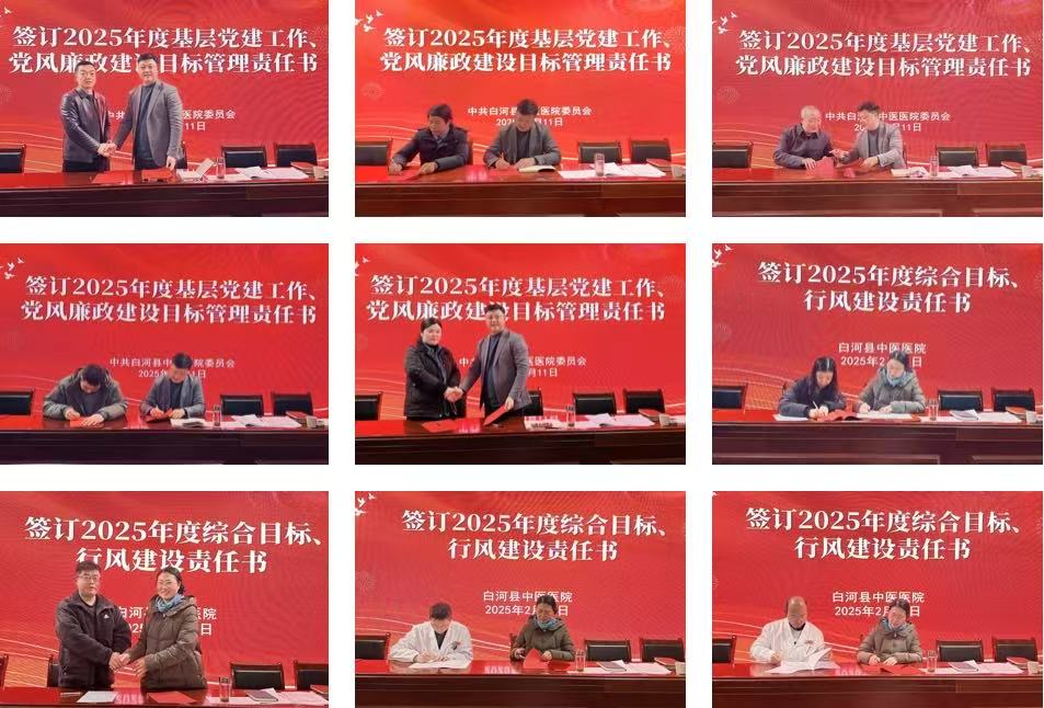 隨后,白河縣中醫(yī)醫(yī)院黨委書(shū)記鄭曉東與各支部書(shū)記簽訂《2025年度黨建工作目標(biāo)管理責(zé)任書(shū)》《2025年度黨風(fēng)廉政建設(shè)責(zé)任書(shū)》,院長(zhǎng)楊翊與各科室主任簽訂《2025 年度綜合目標(biāo)責(zé)任書(shū)》《2025年度行風(fēng)建設(shè)目標(biāo)責(zé)任書(shū)》。各分管領(lǐng)導(dǎo)立足分管工作,對(duì)2024年工作進(jìn)行總結(jié),結(jié)合醫(yī)院痛點(diǎn)難點(diǎn)及發(fā)展大局,深度剖析問(wèn)題,提出建議與舉措,為2025年工作謀劃新思路。