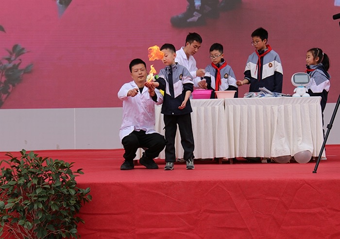 滾珠穿墻、空中成影等各種科技展品琳瑯滿目,同學(xué)們紛紛圍攏在展品周圍,認(rèn)真聆聽工作人員的耐心講解和演示,感受科學(xué)的神奇。阿爾法機(jī)器人、智能機(jī)器狗和人形機(jī)器人依次登場,它們與學(xué)生開展互動,現(xiàn)場表演唱歌、跳舞等節(jié)目,流暢的動作、精準(zhǔn)的指令執(zhí)行,讓孩子們驚喜不已,展現(xiàn)出人工智能領(lǐng)域的前沿成果,讓同學(xué)們沉浸式感受科技與藝術(shù)碰撞出的火花 ??萍拣^工作人員還邀請學(xué)生參與微型火箭發(fā)射、液氮蘑菇云、火云掌等趣味實(shí)驗(yàn),讓同學(xué)們近距離感受科技的無窮魅力。