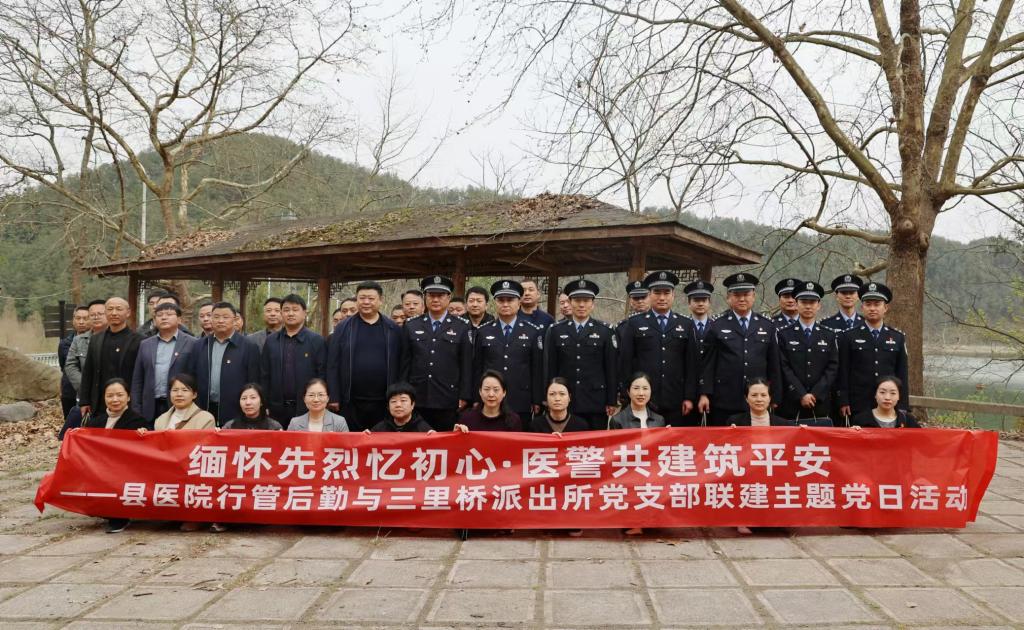 隨后,雙方黨員在紀(jì)念碑附近的空曠場(chǎng)地開(kāi)展“醫(yī)警共建筑平安”主題黨日活動(dòng),活動(dòng)由縣醫(yī)院行管后勤黨支部書(shū)記余春慧主持。