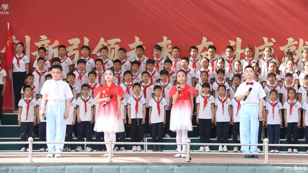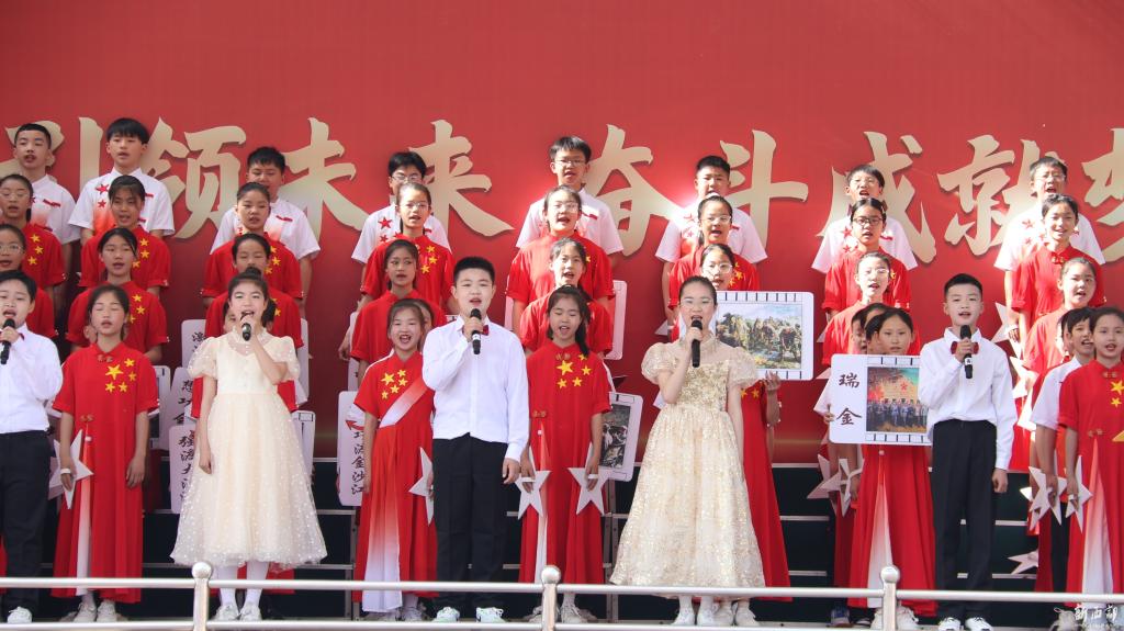 隨后,各年級學(xué)生依次登臺(tái),帶來精彩誦讀。五年級的《五星耀東方》盡顯磅礴,傳遞愛國之情;二年級的《四季詩韻》,孩子們用稚嫩童聲勾勒四季詩意;四年級的《紅色的童話》生動(dòng)演繹,傳承紅色基因;一年級的《學(xué)唐詩》活潑俏皮,開啟唐詩探索;三年級的《如果沒有李白》解讀獨(dú)特,盡顯詩仙魅力;六年級的《祖國贊歌》激昂澎湃,將活動(dòng)推向高潮。