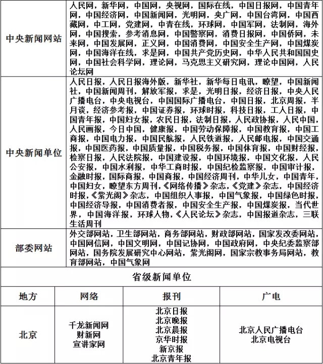 網(wǎng)信辦公布2016年可供轉(zhuǎn)載新聞信息稿源單位名單