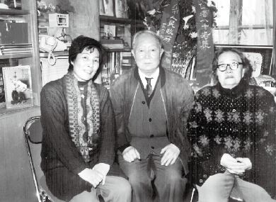 八十大壽時,任震英與夫人侯竹友以及記者魯正葳合影。