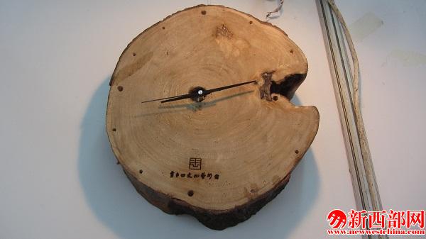 賈平凹藝術(shù)館衍生品——樹木年輪電子鐘。新西部網(wǎng) 王順利攝