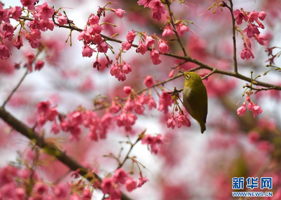 在廣西南寧市石門森林公園,一只鳥兒停留在枝頭(2月3日攝)。新華社記者 周華 攝