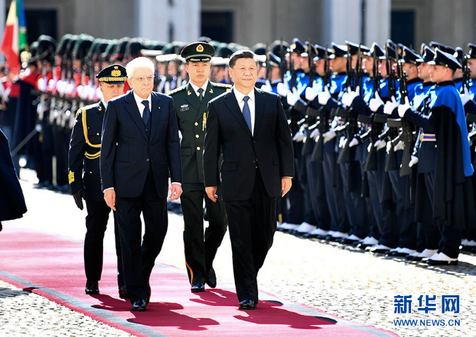 3月22日,國家主席習(xí)近平在羅馬同意大利總統(tǒng)馬塔雷拉舉行會談。會談前,馬塔雷拉總統(tǒng)為習(xí)近平舉行隆重歡迎儀式。新華社記者 謝環(huán)馳 攝