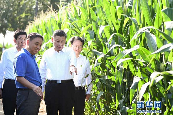 7月22日至24日,中共中央總書記、國家主席、中央軍委主席習(xí)近平在吉林省考察。這是7月22日下午,在四平市梨樹縣國家百萬畝綠色食品原料(玉米)標(biāo)準(zhǔn)化生產(chǎn)基地核心示范區(qū)地塊,習(xí)近平走進(jìn)玉米地,了解農(nóng)業(yè)科技研發(fā)利用、黑土地保護(hù)情況。 新華社記者 燕雁 攝