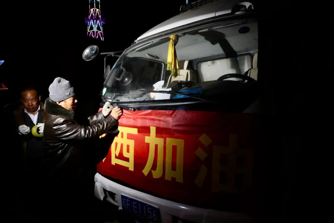 1月12日上午,經(jīng)過(guò)5天跋涉,跨越近4000公里,4輛掛著“陜西加油”橫幅的貨車(chē),滿載防瘟香囊、鮮羊肉、礦泉水等物資抵達(dá)陜西。