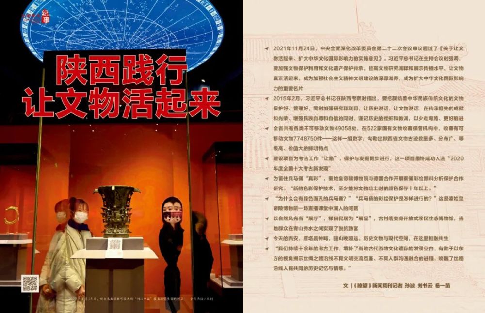 讓文物活起來,讓文化遺產(chǎn)殿堂成為潤澤無聲的課堂,讓文物古跡賦能綠水青山……在陜西,古老的文物古跡與全新的時代命題正在碰撞出奪目的火花。