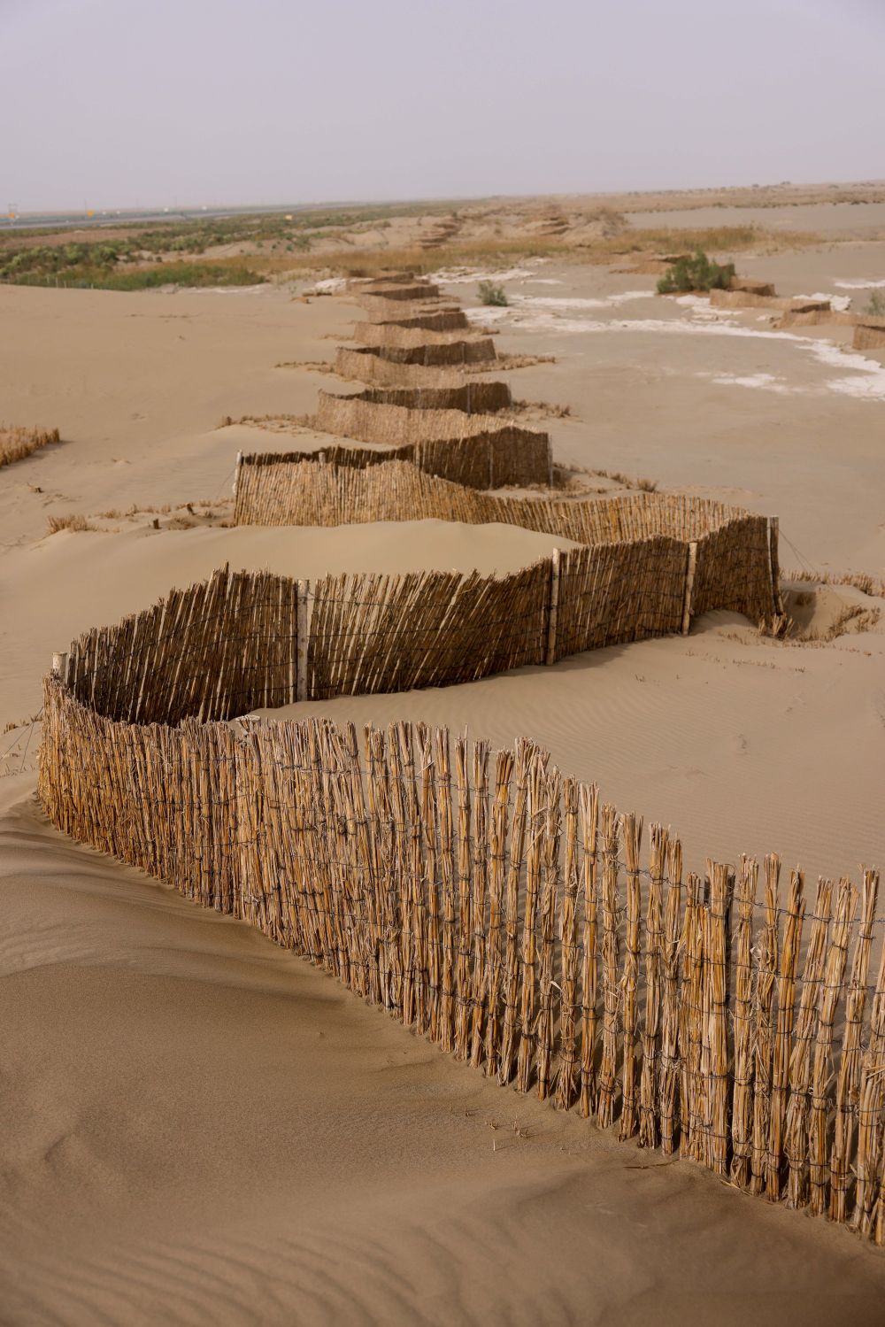 這是在和若鐵路沿線拍攝的1.5米高的立式沙障(2022年5月18日攝)。新華社記者 丁磊 攝