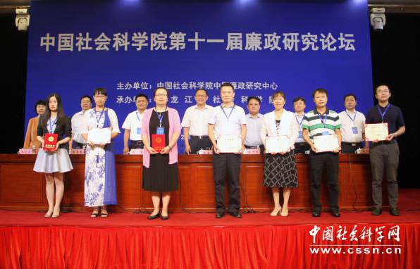 中國(guó)社會(huì)科學(xué)網(wǎng)訊(記者 趙徐州 通訊員 徐雪)由中國(guó)社會(huì)科學(xué)院中國(guó)廉政研究中心主辦、黑龍江省社會(huì)科學(xué)院承辦的中國(guó)社會(huì)科學(xué)院第十一屆廉政研究論壇于2018年7月25日在哈爾濱召開(kāi)。來(lái)自中國(guó)社會(huì)科學(xué)院,各地方社會(huì)科學(xué)院、黨校、高校、紀(jì)委監(jiān)委系統(tǒng)、國(guó)有企業(yè)及中國(guó)社會(huì)科學(xué)院中國(guó)廉政研究中心廉政調(diào)研基地等40多家單位130余名代表參加了論壇。中國(guó)社會(huì)科學(xué)院黨組成員張英偉出席論壇并致辭。黑龍江省紀(jì)委常委蔡洪生出席開(kāi)幕式。黑龍江省社會(huì)科學(xué)院黨委書(shū)記周峰,佳木斯市紀(jì)委常委、監(jiān)委委員趙鳳軍分別致辭。論壇由中國(guó)社會(huì)科學(xué)院直屬機(jī)關(guān)紀(jì)委書(shū)記王曉霞主持。