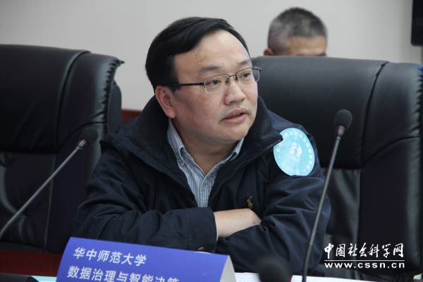 武漢大學(xué)人文社會科學(xué)研究院副院長、大數(shù)據(jù)研究院常務(wù)副院長夏義堃研究員在會上發(fā)言 明海英攝