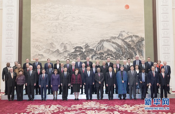 會(huì)見(jiàn)前,習(xí)近平同外方嘉賓集體合影。