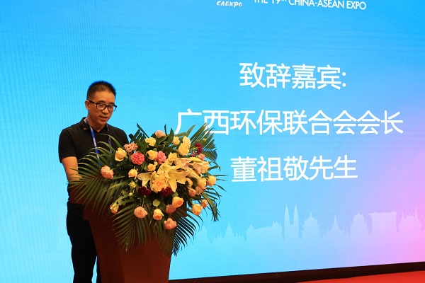 廣西環(huán)保聯(lián)合會會長董祖敬先生為會議致辭。廣西作為中國-東盟交流合作的前沿和窗口,與東盟國家交流有著多方位交流合作的平臺和渠道,廣西環(huán)保聯(lián)合會也希望借此本屆中國-東盟博覽會的平臺,攜手眾多企業(yè)會員,把握機遇,發(fā)展優(yōu)勢,通力合作,與中國民促會開展一系列的公益活動,把社會責任作為一項精品工程來抓,同時鑄就企業(yè)社會責任交流的機會,推動在東盟國家的中資企業(yè)更加有效履行企業(yè)社會責任。