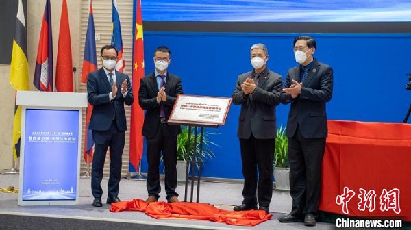 圖為“中國—老撾法律研究咨詢中心”揭牌成立。西南政法大學(xué)供圖