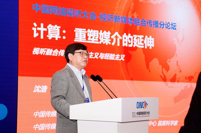 中國(guó)傳媒大學(xué)新聞學(xué)院教授、博士生導(dǎo)師,媒體融合與傳播國(guó)家重點(diǎn)實(shí)驗(yàn)室大數(shù)據(jù)中心首席科學(xué)家沈浩發(fā)表《視聽(tīng)融合傳播的“數(shù)據(jù)主義”與“經(jīng)驗(yàn)主義——計(jì)算:重塑媒介的延伸》演講